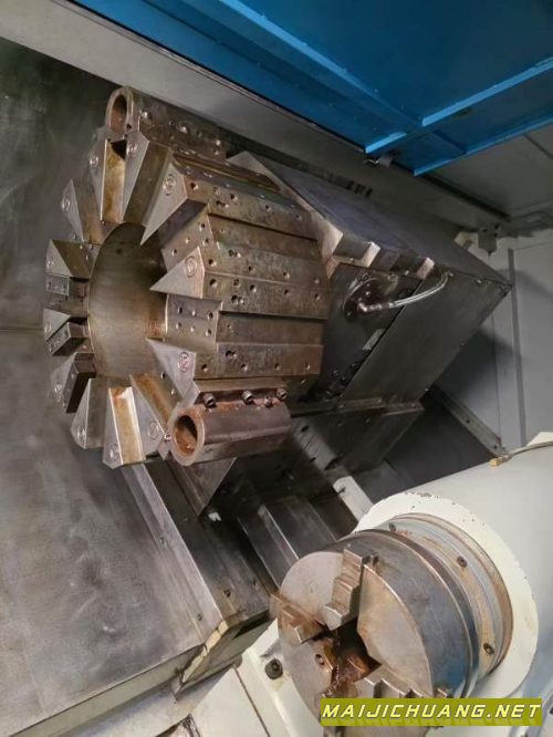 台湾原装立仲CNC-S50/3M重切削数控车床,24寸双液压卡盘,主轴通孔320,主电机45Kw带齿轮箱,加工长度3米,配12工位伺服刀塔,刀塔厚度300mm,带自动尾座,配德国SMW液压中心架,可加持范围45-310,带排屑机,仅仅使用3000个小时。